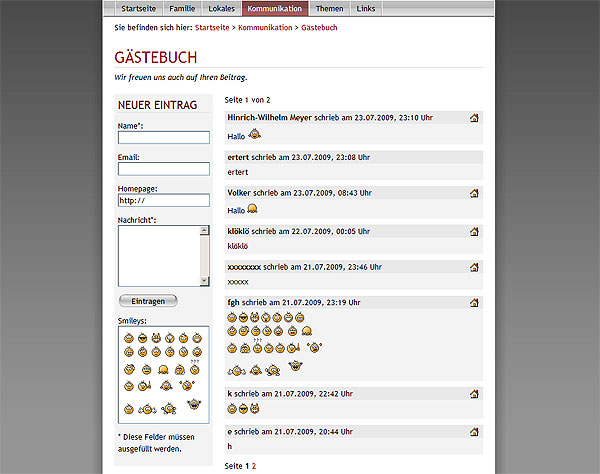 Damit Besucher der Homepage eventuelle Sorgen, Note, Anregungen und Beschwerden loswerden können, gibt es jetzt auch ein Gästebuch.